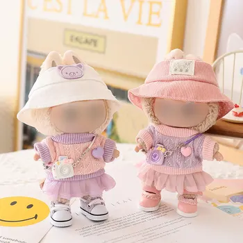 Cartoon Style White Bucket Hat Small Camera Canvas Shoes Stuffed Plush Toys Plastic Model Toy Accessories for Girls